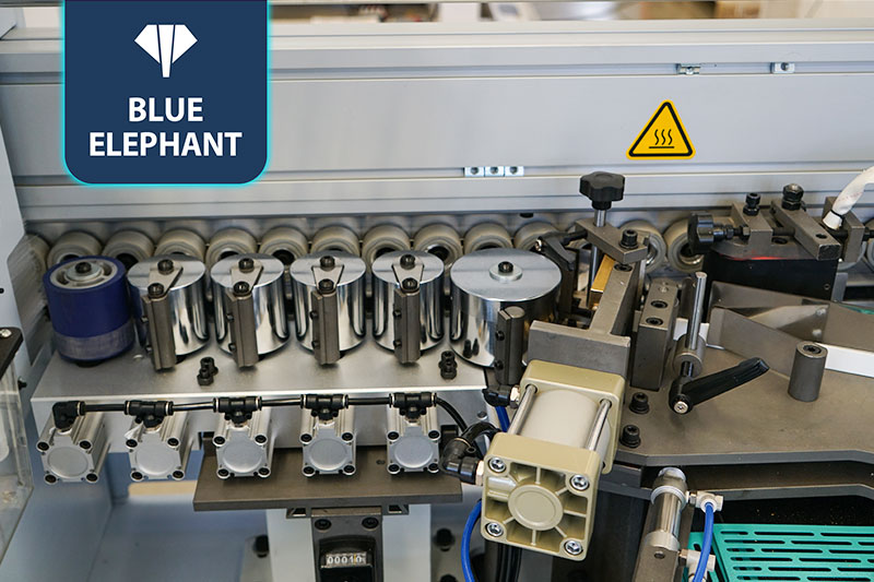 六輪壓貼使封邊板材和封邊帶雙面涂膠均勻并壓貼,保證粘合力更加牢固。