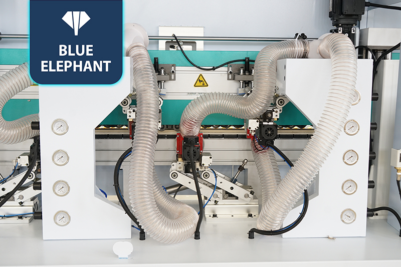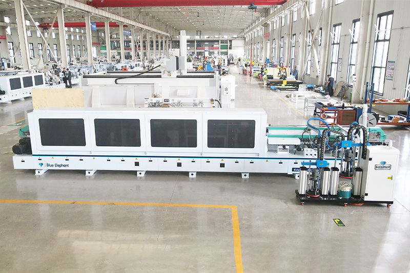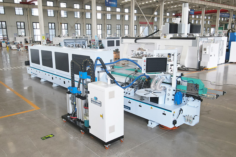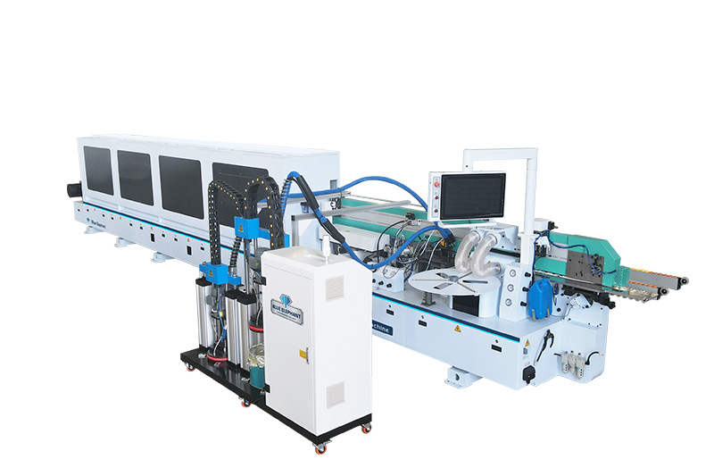 主要功能:分離→預銑→PUR膠鍋→皮帶壓輪→粗修→精修→刮邊1→刮邊2→齊頭→仿形跟蹤→平刮→清洗→拋光1→拋光2→拋光3。