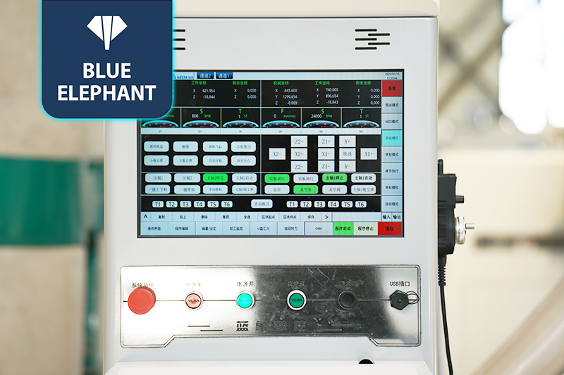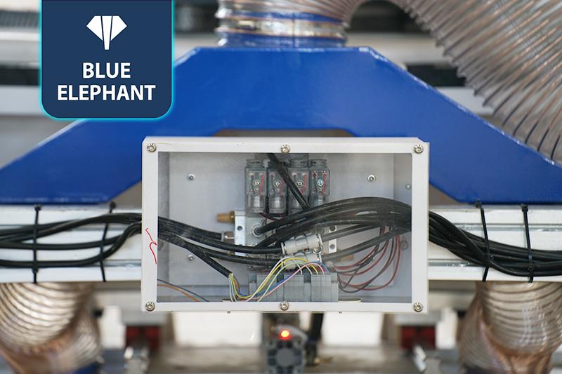 2.共兩套的9KW大功率主軸配備12位直排刀庫(每個主軸可配6把刀),高速開料,刀庫合理分配,互不干擾;