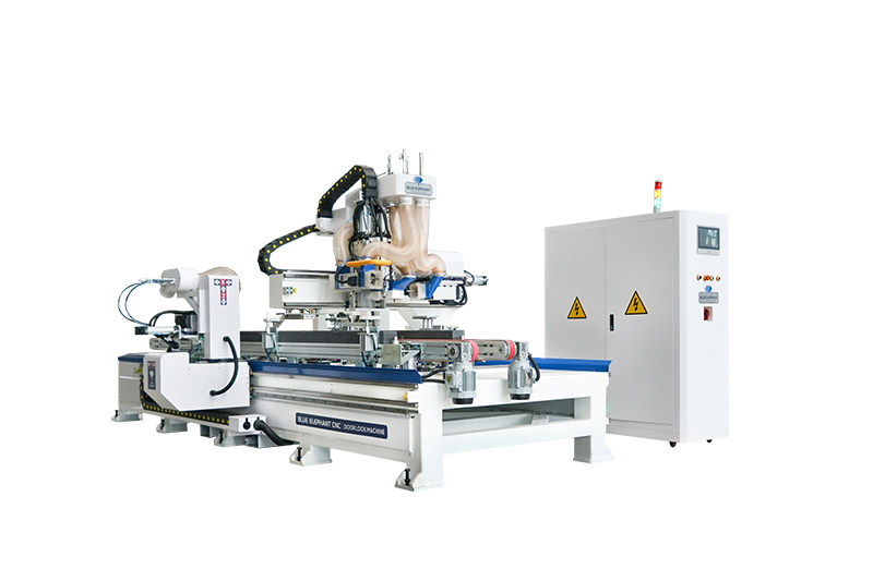 EM3.2-1126通過(guò)式雙通道鎖孔機(jī)是一款專(zhuān)門(mén)用于實(shí)木門(mén)規(guī)方,以及合頁(yè)孔鎖孔孔加工的全自動(dòng)木工門(mén)加工設(shè)備,設(shè)備不僅能自動(dòng)修整木門(mén)的兩端面及兩側(cè)面,使木門(mén)能夠規(guī)整復(fù)合尺寸要求,同時(shí)可以鉆銷(xiāo)兩端面噴漆工藝孔,及鎖孔合頁(yè)孔加工,將傳統(tǒng)的鎖孔合頁(yè)孔機(jī)以及規(guī)方四邊鋸,復(fù)合為一體,減少了工作環(huán)節(jié),大大提升了加工效率。