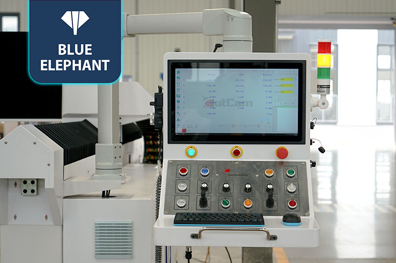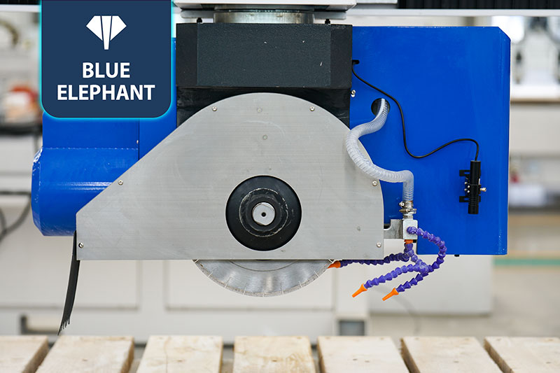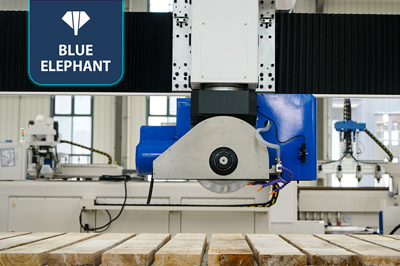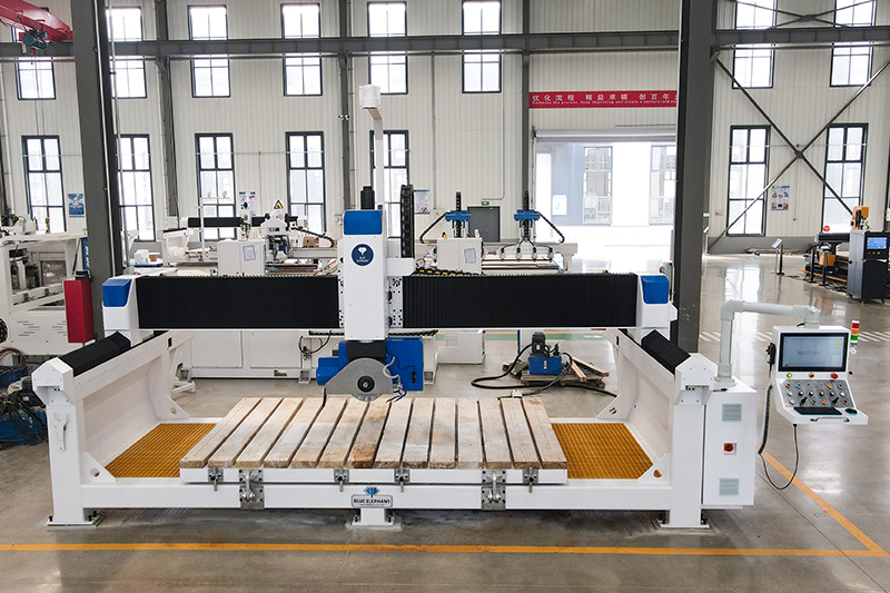 5+1 數控橋切鋸能夠以任何所需的角度和形狀對花崗巖、大理石、人造石、板巖和各種其他石材進行切割和雕刻。本機采用的藍象數控系統。