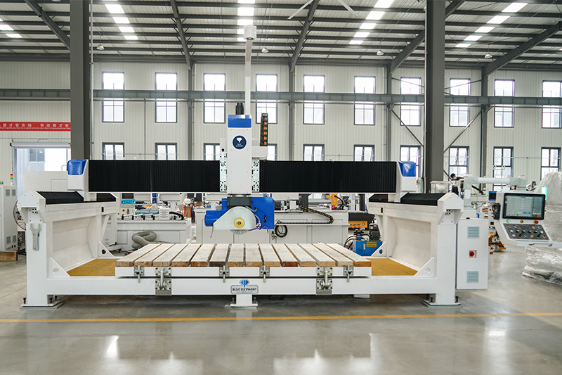 5+1數控橋切鋸可以以任何角度和形狀切割和修整花崗巖、大理石、人造石、板巖和其他石頭。完成圓形切割、方形切割、扇形切割、橢圓形切割、45°斜面切割、鉆孔、外邊緣拋光等。