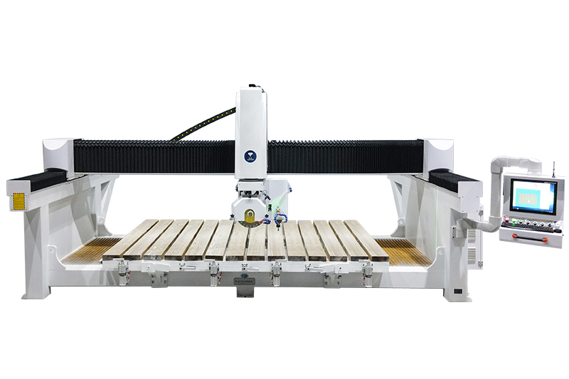 1、4+1數控橋切鋸可實現橫切、立切、坡口切割、菱形切割、圓形切割、橢圓形切割、45°倒角、臺下盆、臺下盆切割等。